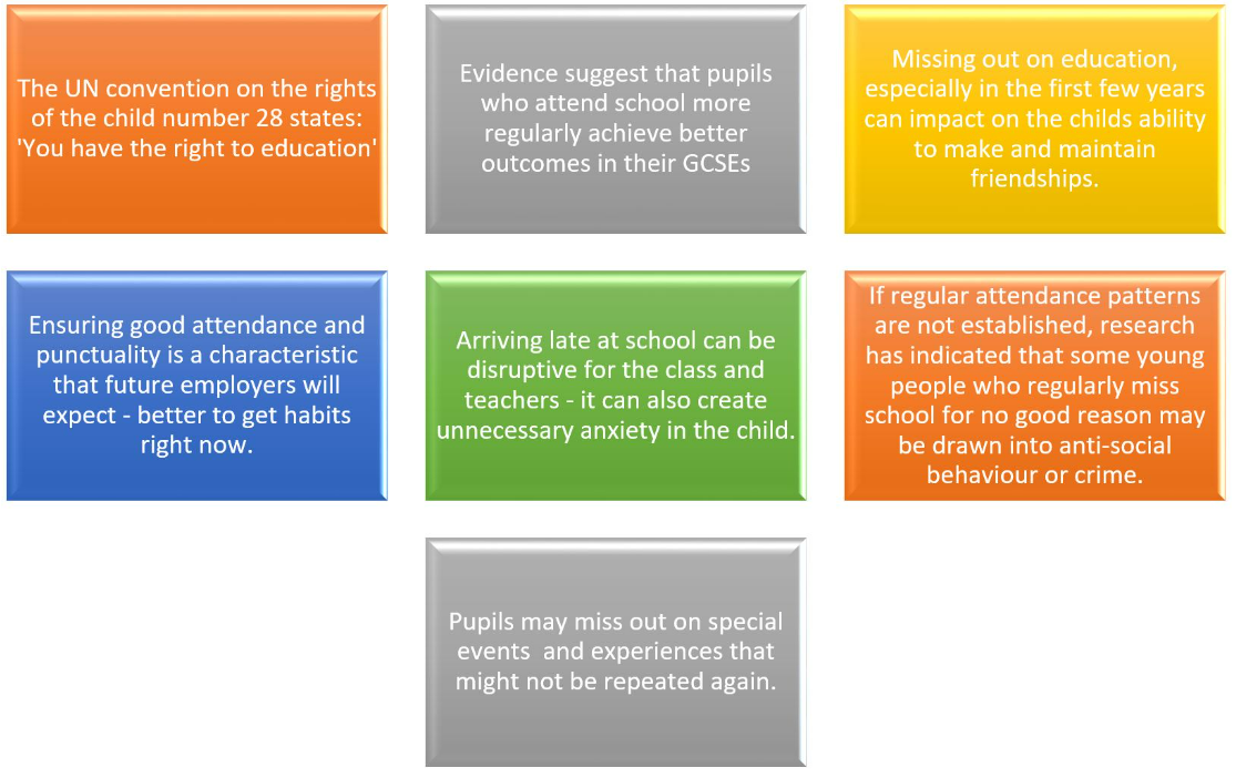 It is a statutory requirement for all children to attend school every day. We believe that excellent attendance at school will give each child the best opportunity to be successful in education.